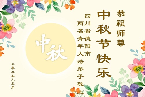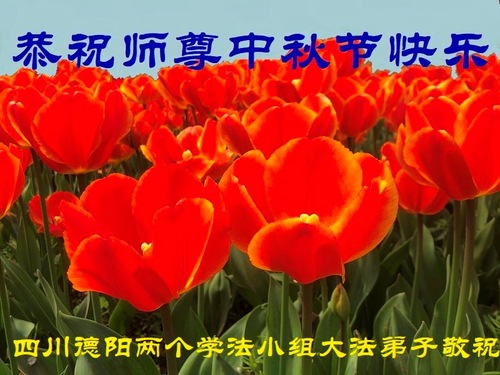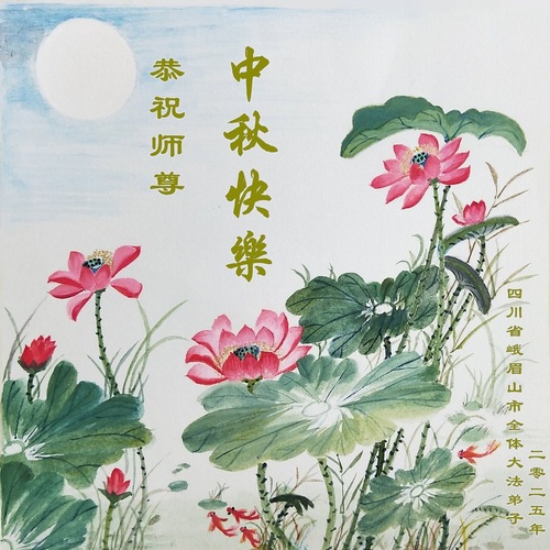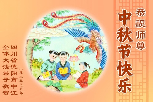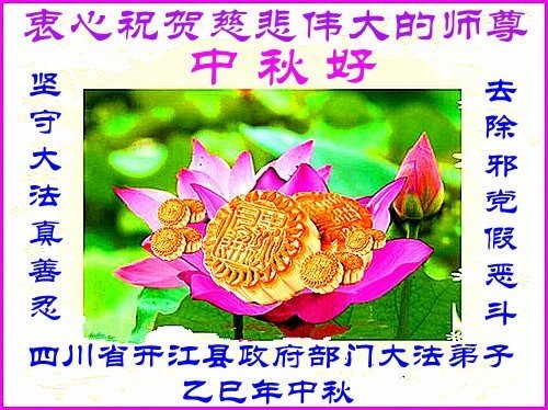 Praktykujący Falun Dafa z prowincji Syczuan życzą Czcigodnemu Mistrzowi Wesołego Święta Środka Jesieni!