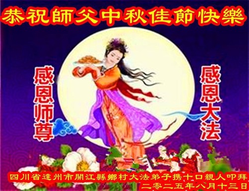 Praktykujący Falun Dafa z prowincji Syczuan życzą Czcigodnemu Mistrzowi Szczęśliwego Święta Środka Jesieni!