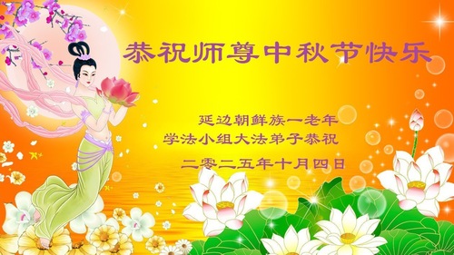 Praktykujący Falun Dafa z miast Tonghua, Songyuan, Baishan i Koreańskiej Prefektury Autonomicznej Yanbian życzą Czcigodnemu Mistrzowi Szczęśliwego Święta Środka Jesieni!
