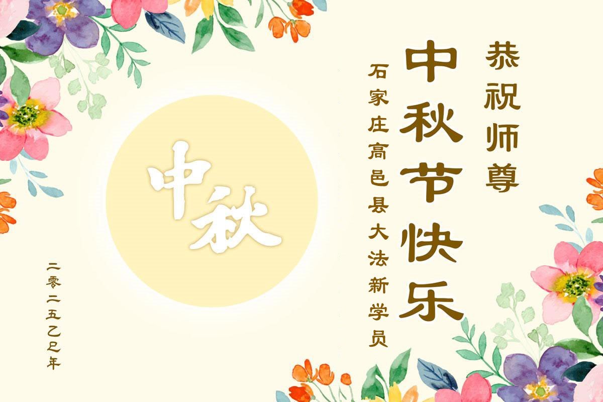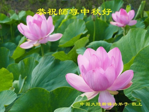 Praktykujący Falun Dafa z prowincji Hebei, Heilongjiang, Hubei, Guangdong, Szantung i Syczuan oraz dwóch gmin życzą Czcigodnemu Mistrzowi Wesołego Święta Środka Jesieni!