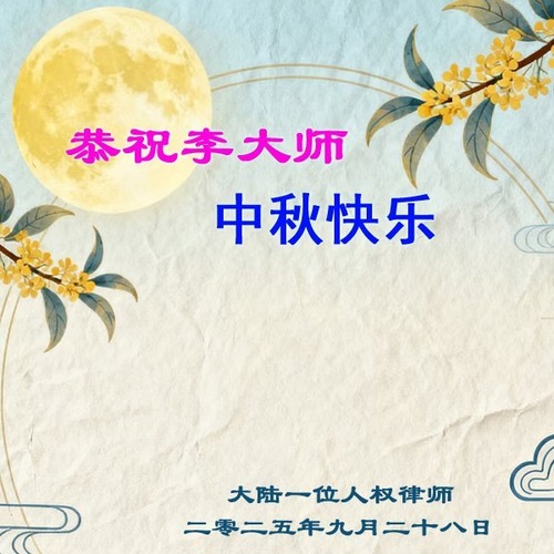 (Minghui.org) Z okazji Święta Środka Jesieni (6 października 2025 r.) napłynęły pozdrowienia od zwolenników Falun Dafa. Życzyli założycielowi, Mistrzowi Li Hongzhi, wesołych świąt i dziękowali mu za liczne błogosławieństwa, których doświadczyli.