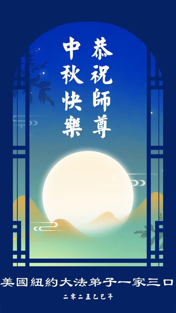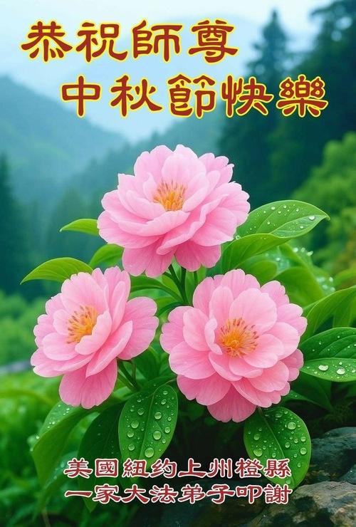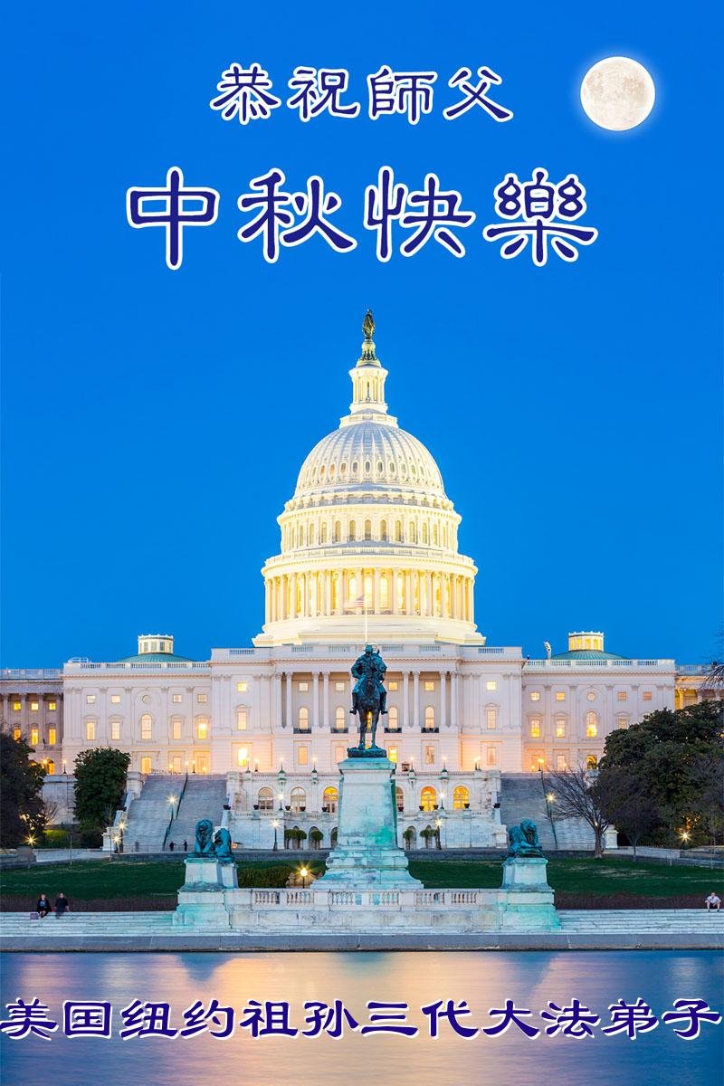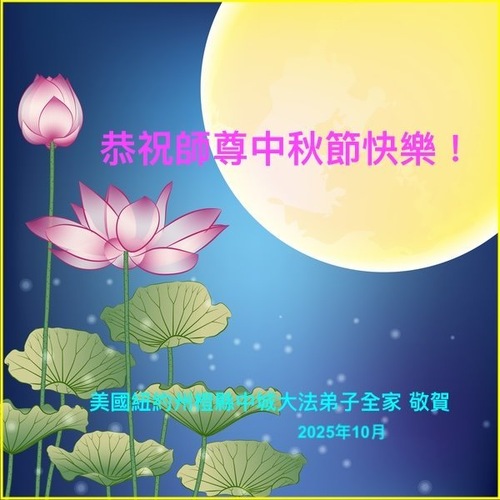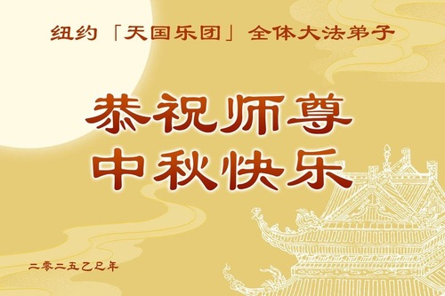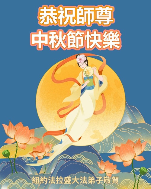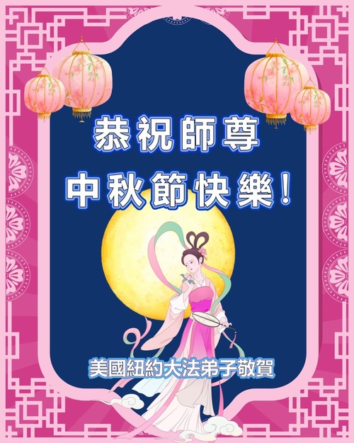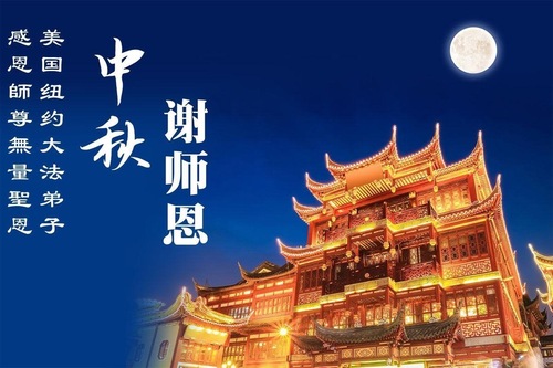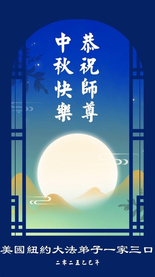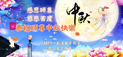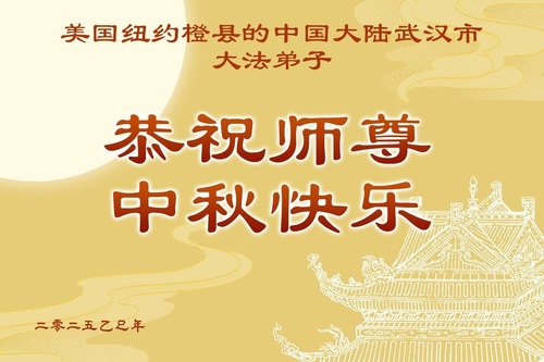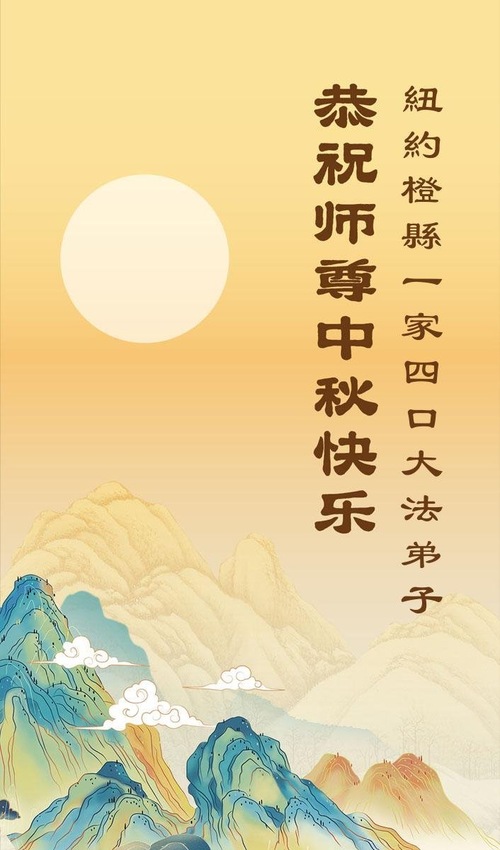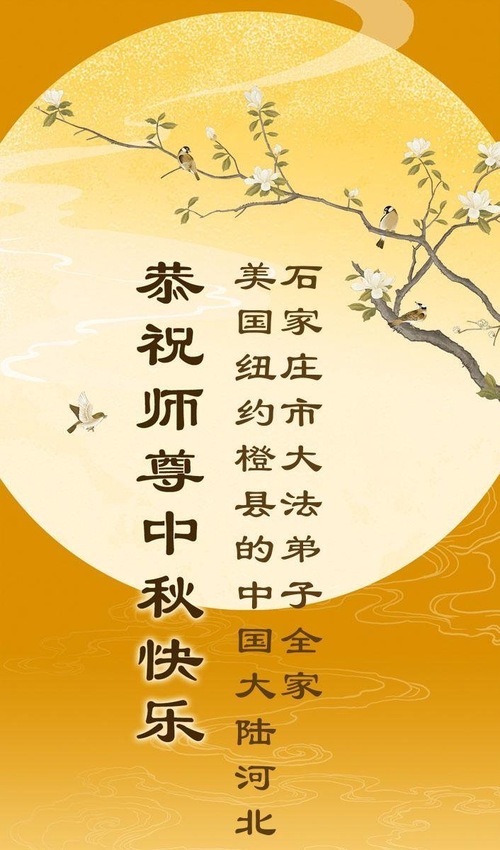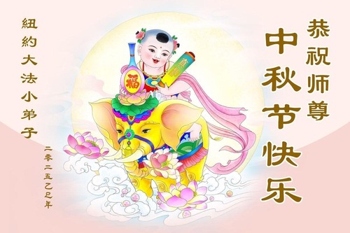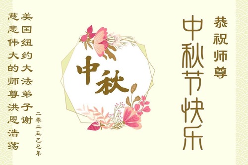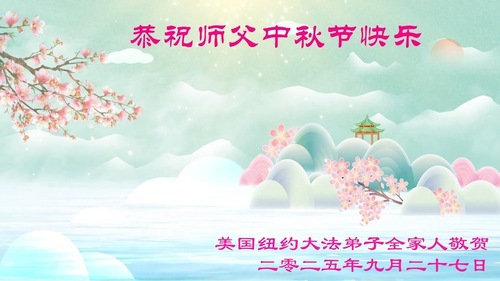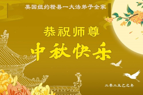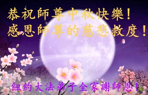 Praktykujący Falun Dafa z Tangshan w prowincji Hebei, obecnie mieszkający w Nowym Jorku, z szacunkiem życzy Współczującemu i Wielkiemu Mistrzowi szczęśliwego Święta Środka Jesieni!