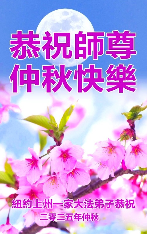 Rodzina Falun Dafa z północnej części stanu Nowy Jork z poważaniem życzy Mistrzowi szczęśliwego Święta Środka Jesieni!