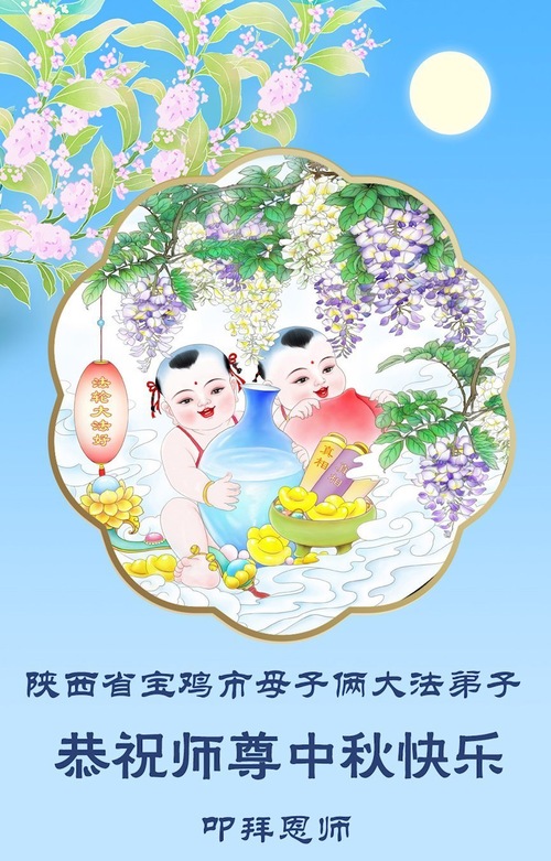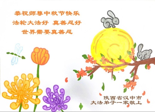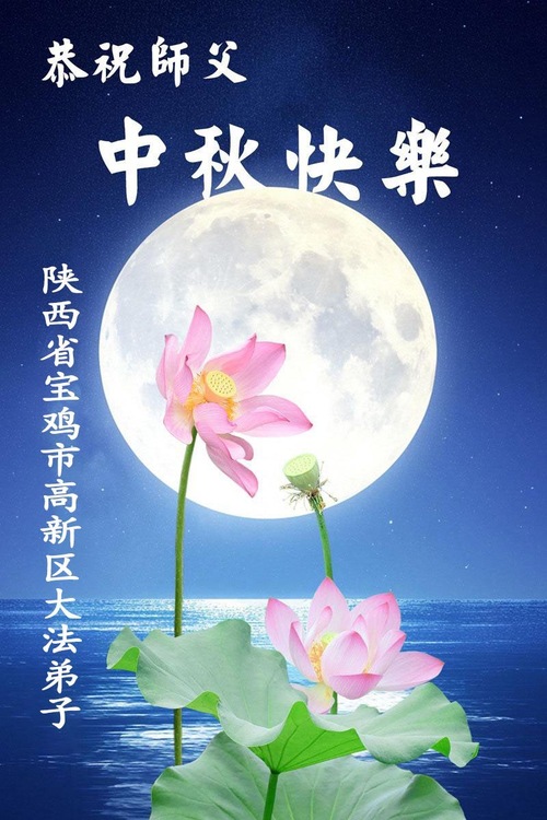 Praktykujący Falun Dafa z prowincji Shaanxi życzą Czcigodnemu Mistrzowi Szczęśliwego Festiwalu Środka Jesieni!