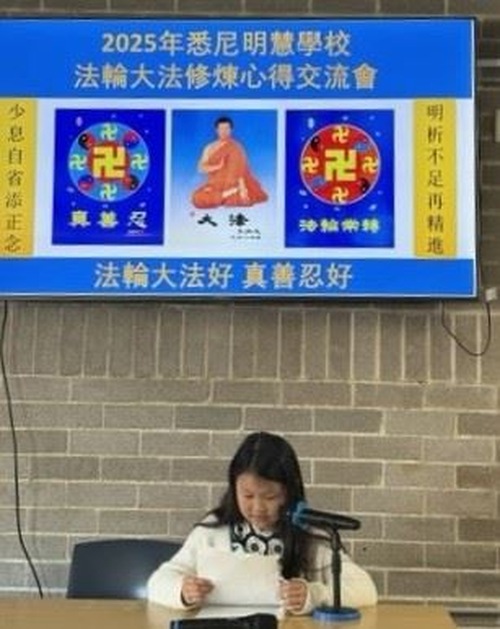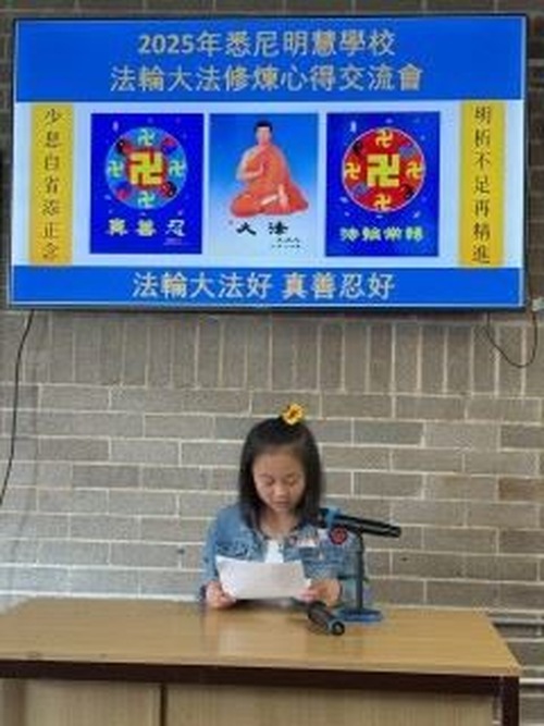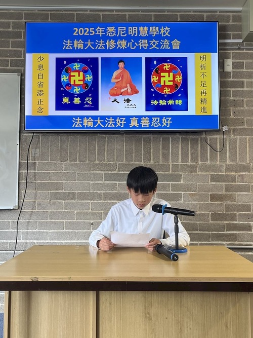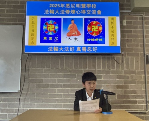 (Minghui.org) Szkoła Minghui w Sydney zorganizowała 28 września 2025 r. Konferencję Wymiany Doświadczeń Falun Dafa. Dwunastu młodych praktykujących wygłosiło przemówienia i opowiedziało o tym, jak wytrwale kultywują pomimo napiętego harmonogramu szkolnego i codziennego życia, dążą do porzucenia przywiązań, pomagają Mistrzowi w uprawomocnianiu Fa, w ratowaniu czujących istot i stają się wykwalifikowanymi młodymi praktykującymi.