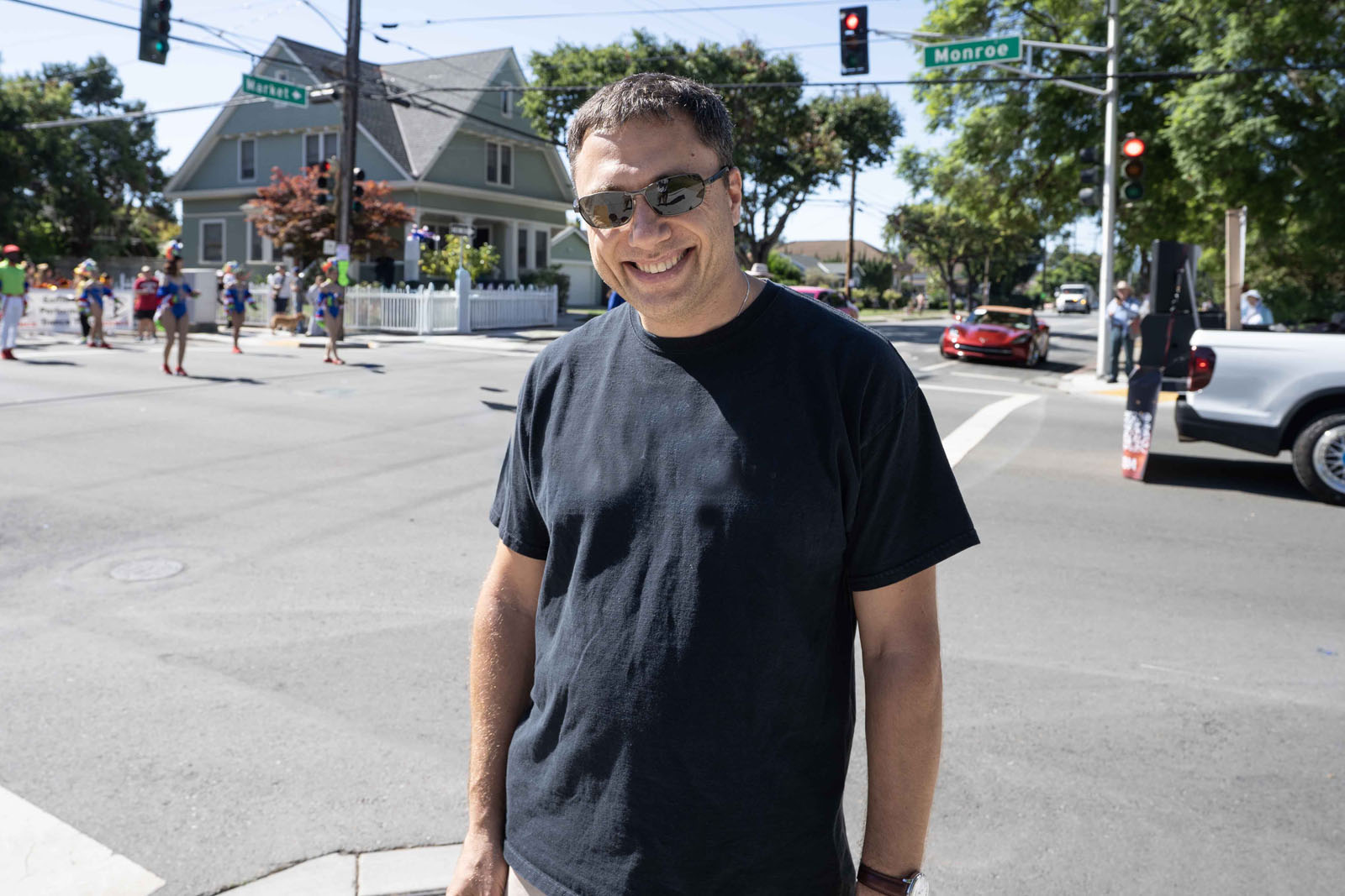 Przed paradą pan Luo z prowincji Liaoning w Chinach obchodził platformę Falun Dafa, robiąc zdjęcia. „To takie spektakularne! Ta parada jest wspaniała!