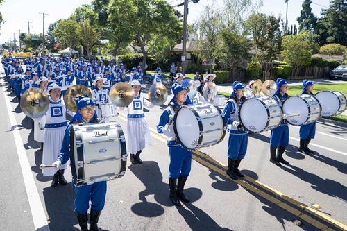 Parada rozpoczęła się o godzinie 11:00. W pochodzie praktykujących Falun Dafa (znanego również jako Falun Gong) uczestniczyli: Orkiestra Marszowa Tian Guo, zespół prezentujący ćwiczenia, platforma oraz zespół bębnów.
