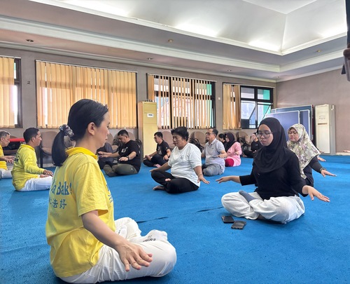 W piątek, 31 października 2025 r., praktykujący zostali zaproszeni do przedstawienia Falun Dafa pracownikom urzędu dzielnicy Kembangan w zachodniej Dżakarcie. Wydarzenie odbyło się rano, w godzinach od 7:30 do 9:30. Rozpoczęło się od wyjaśnienia przez praktykujących, czym jest Falun Dafa, przedstawienia jego historii oraz opowiedzenia o swoich osobistych doświadczeniach przed rozpoczęciem praktykowania Falun Dafa.