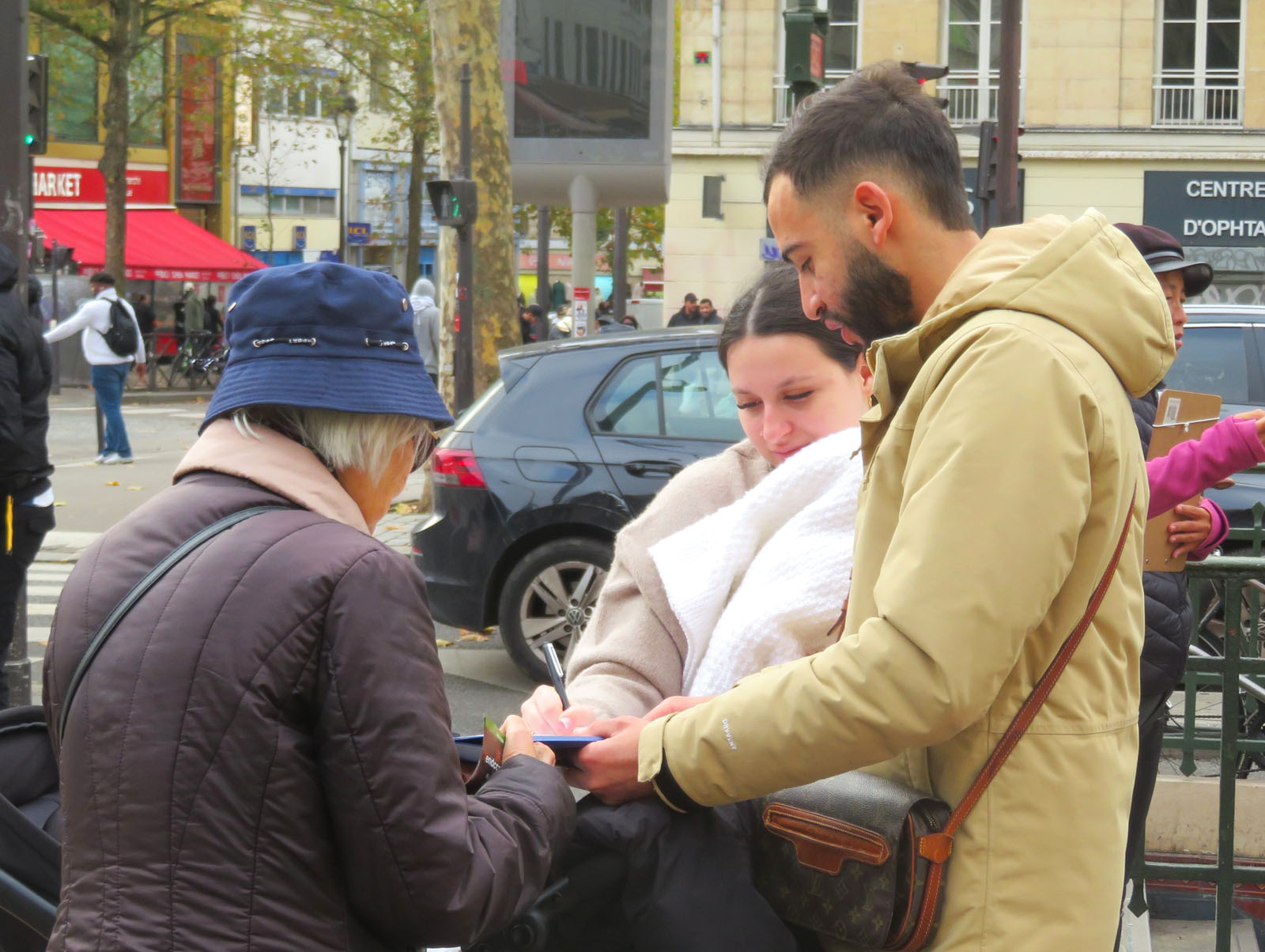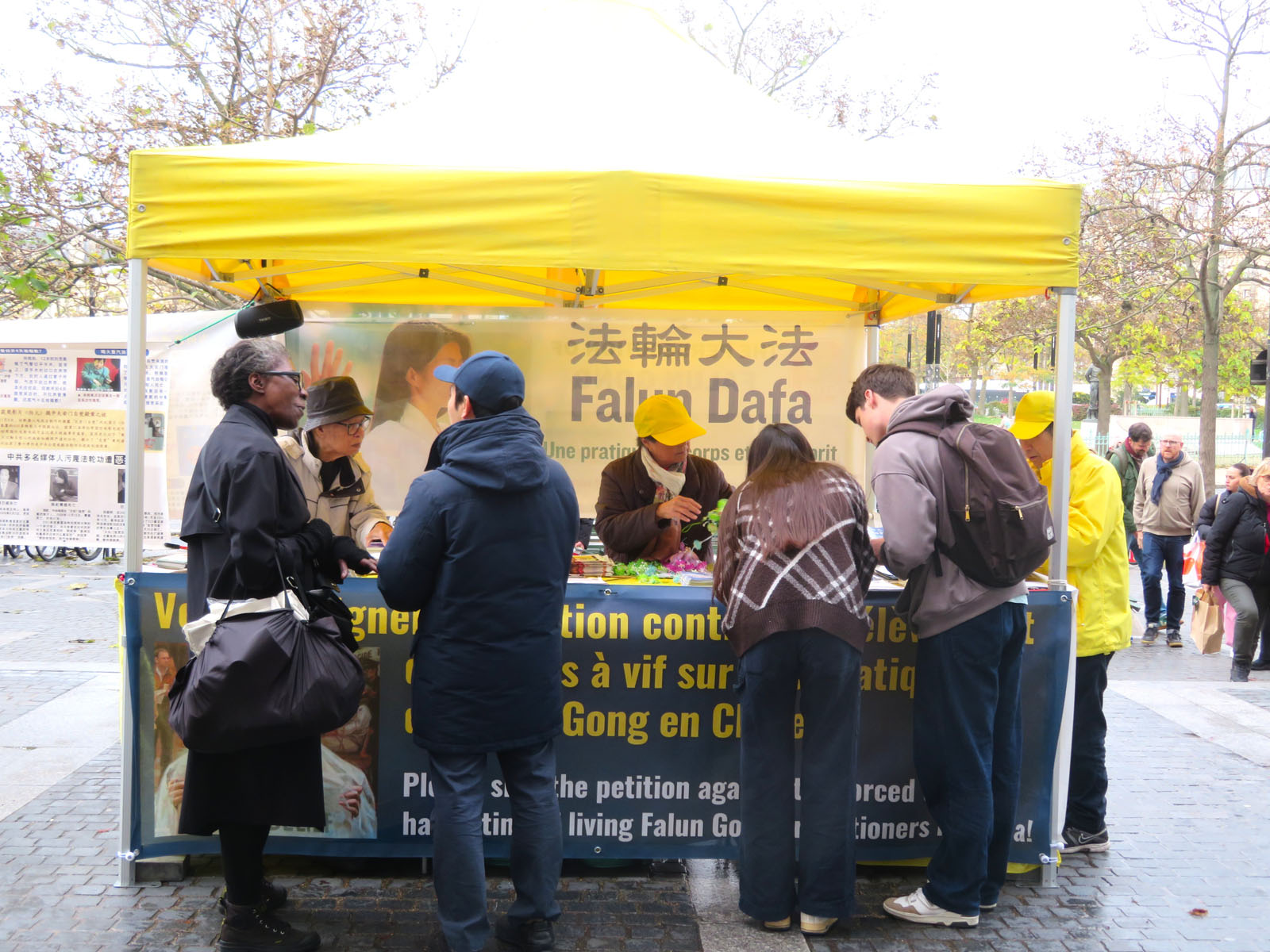 Podczas wydarzenia na Place d'Italie 8 listopada 2025 r. praktykujący przedstawili Falun Dafa i zwiększyli świadomość na temat prześladowań. Wiele osób podpisało petycję przeciwko prześladowaniom. Niektórzy nauczyli się ćwiczeń Falun Dafa i pytali o miejsca grupowych praktyk.