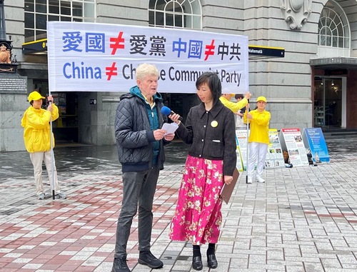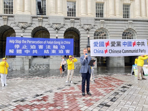 Najpierw wyraził podziw dla praktykujących, mówiąc, że nieustannie podnoszą świadomość na temat nielegalnego przetrzymywania, tortur i sankcjonowanego przez państwo przymusowego pobierania organów przez Komunistyczną Partię Chin. Powiedział, że wytrwałość praktykujących jest cenna.