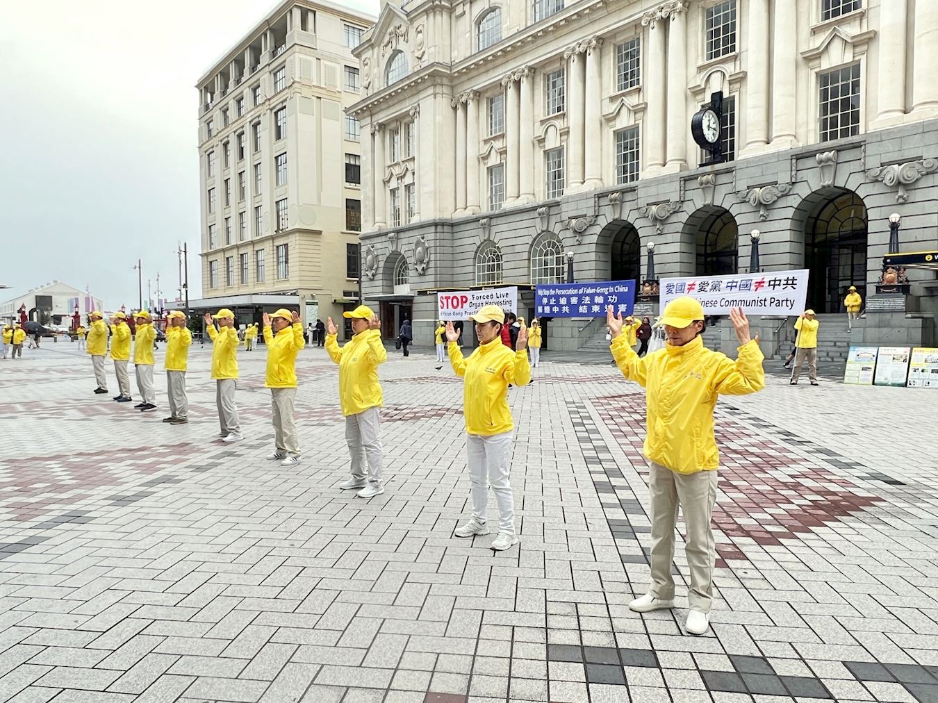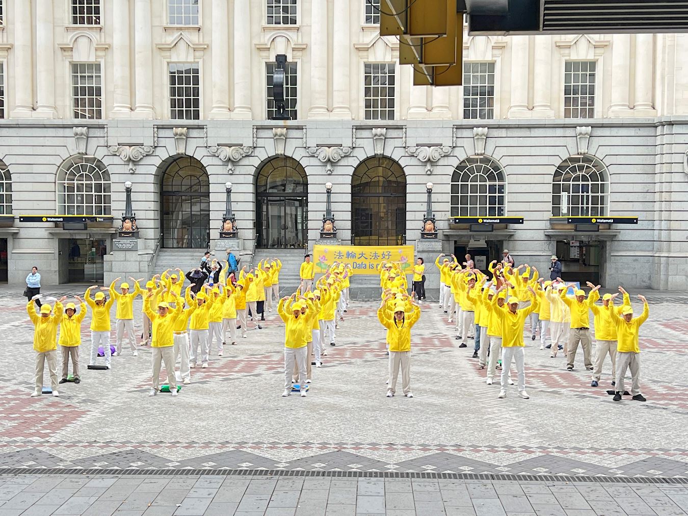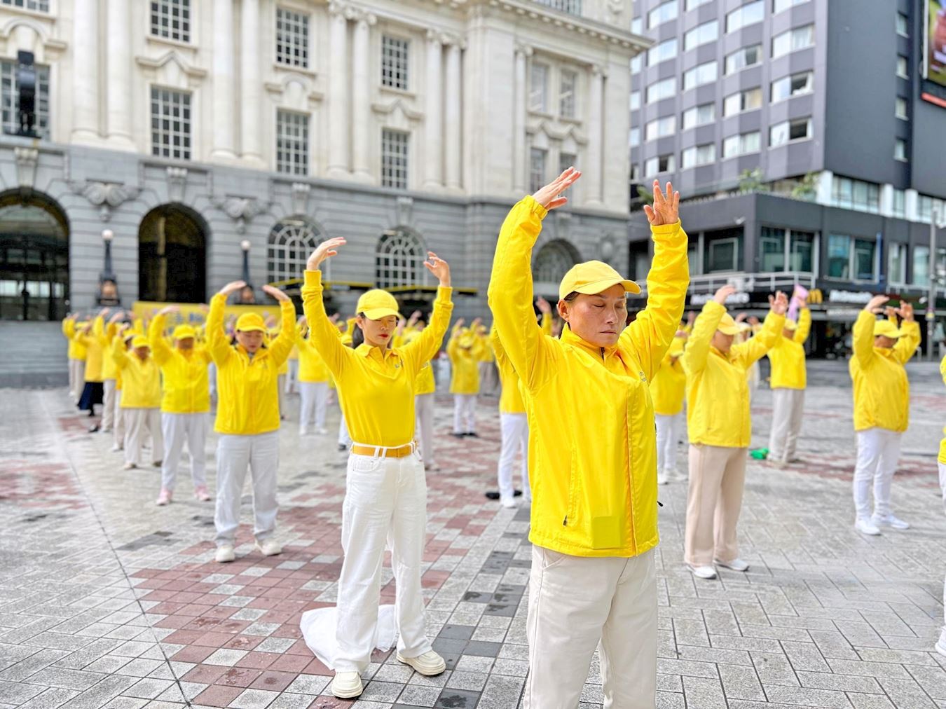 Praktykujący Falun Dafa wykonywali ćwiczenia na Commercial Bay Square 15 listopada 2025 r.