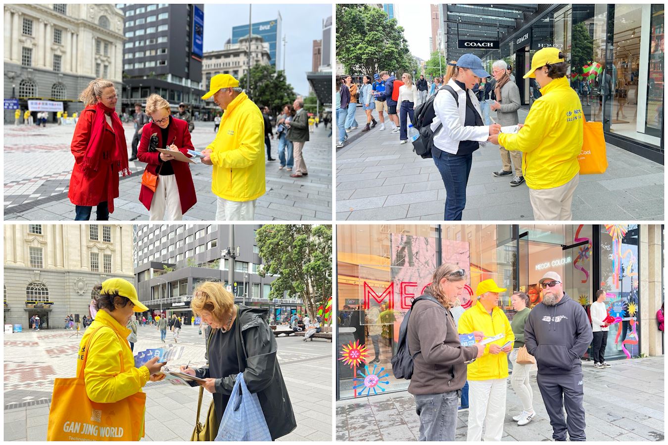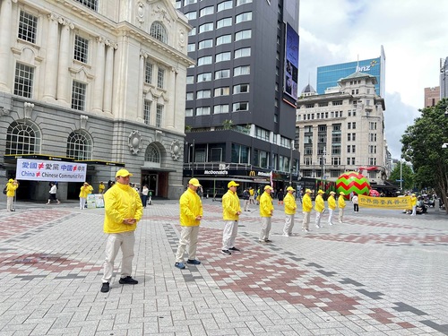 (Minghui.org) Praktykujący zorganizowali wiec i wykonali ćwiczenia Falun Dafa (Falun Gong) na Commercial Bay Square 15 listopada 2025 roku. Chcieli opowiedzieć ludziom o Falun Dafa i podnieść świadomość na temat prześladowań ze strony Komunistycznej Partii Chin (KPCh). Barry Wilson, były przewodniczący Rady Swobód Obywatelskich w Auckland, oraz prawnik zajmujący się prawami człowieka Kerry Gore przemawiali na wiecu. Wezwali rząd Nowej Zelandii, organizacje międzynarodowe i wszystkie kręgi społeczne do zwrócenia uwagi na prześladowania ze strony KPCh.