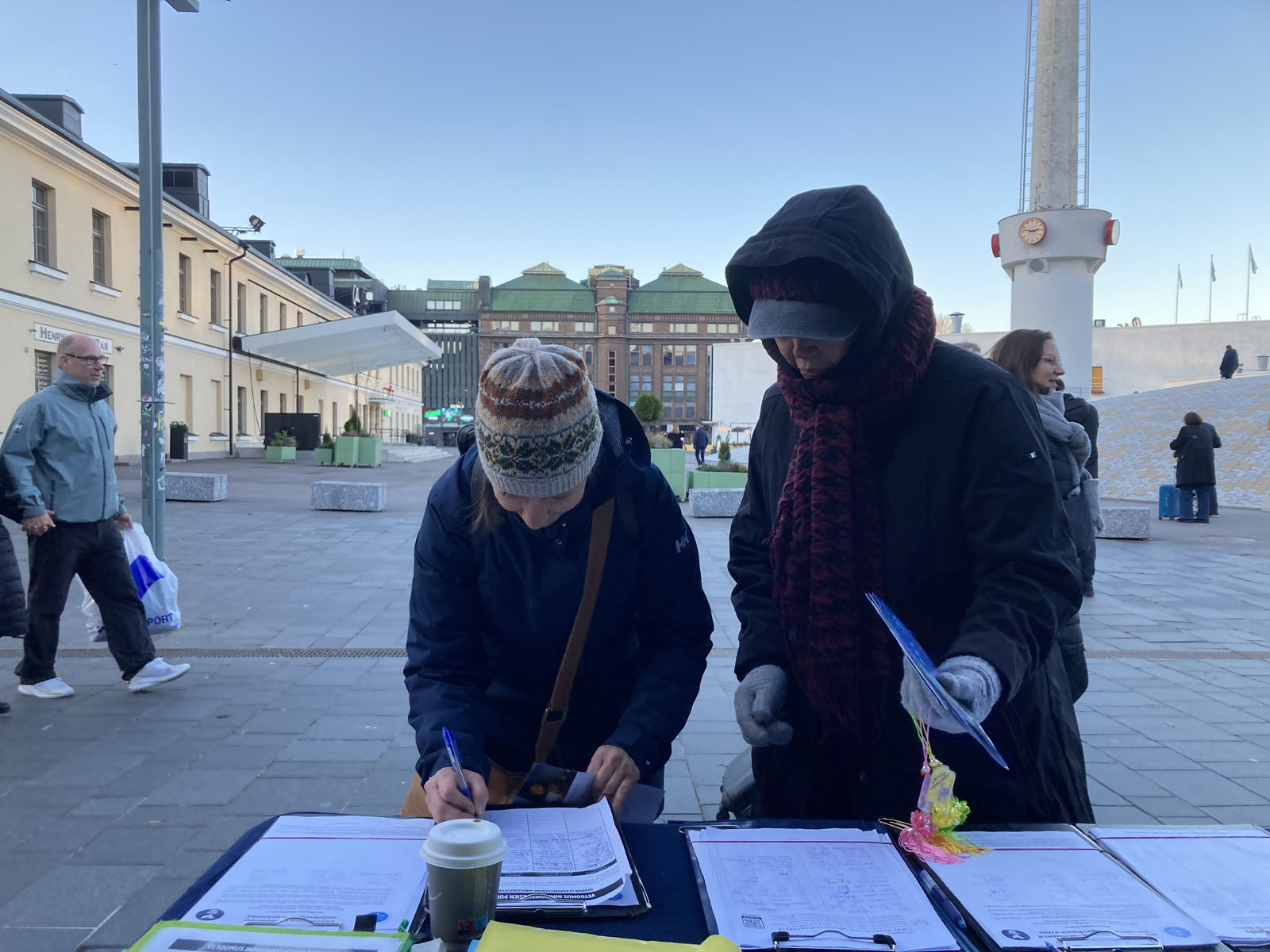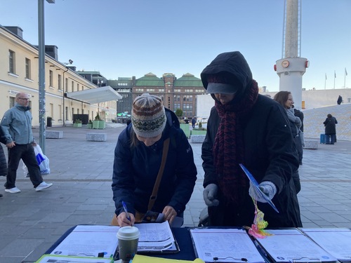 (Minghui.org) Praktykujący Falun Dafa w Finlandii przeprowadzili działania na placu Kamppi w Helsinkach 15 listopada 2025 roku. Podnieśli oni świadomość na temat prześladowań ze strony Komunistycznej Partii Chin (KPCh), w tym nielegalnego zatrzymania, tortur i przymusowego pobierania organów, a także zaapelowali do społeczności międzynarodowej o zwrócenie uwagi na trwające 26 lat okrucieństwo.