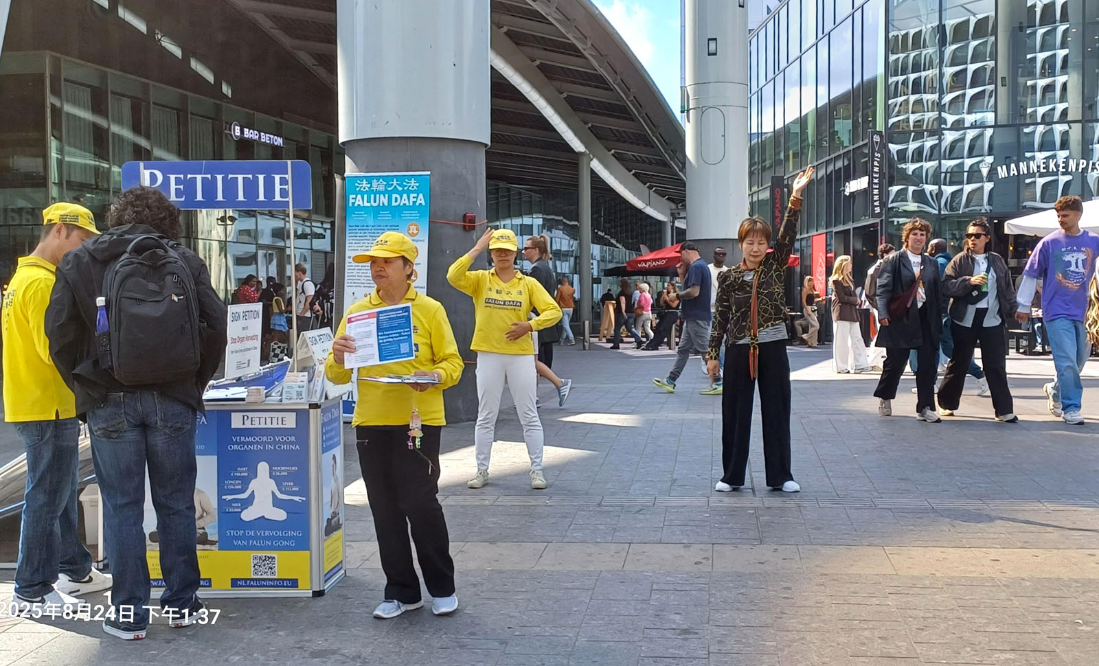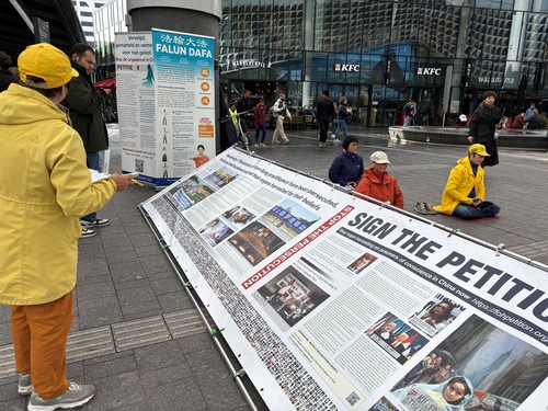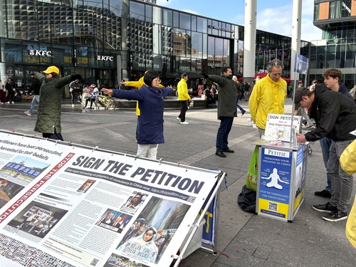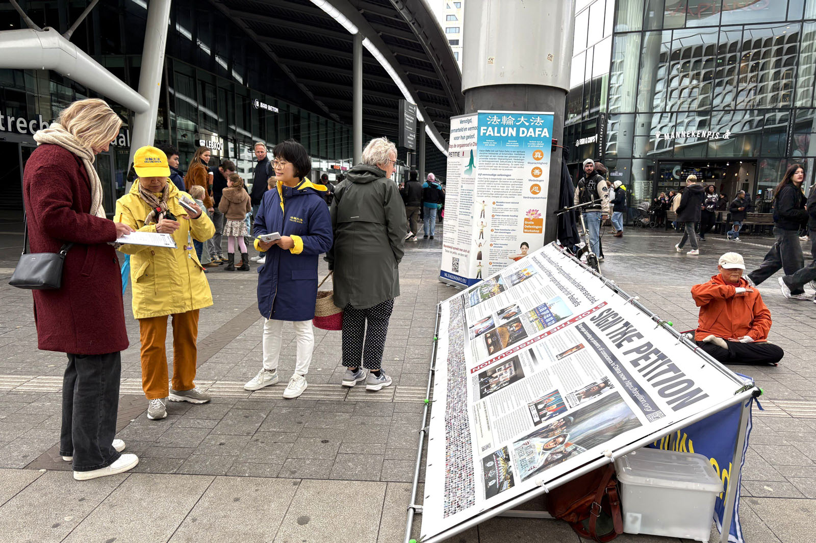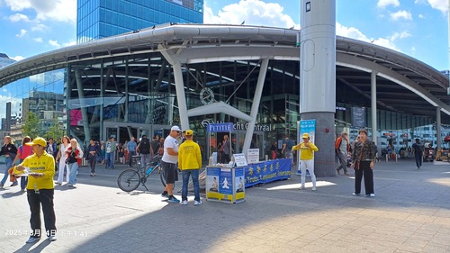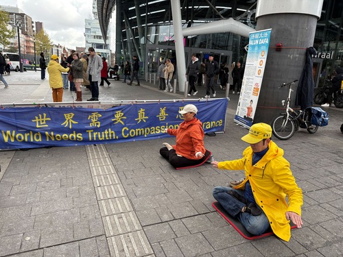 (Minghui.org) 26 października 2025 roku praktykujący Falun Dafa z różnych miast Holandii zorganizowali akcję w pobliżu Dworca Centralnego w Utrechcie, aby poinformować opinię publiczną o Falun Dafa i procederze grabieży organów od praktykujących w Chinach. Utworzyli stoisko informacyjne z materiałami przedstawiającymi fakty dotyczące prześladowań ze strony Komunistycznej Partii Chin (KPCh). Przeprowadzili ćwiczenia Falun Dafa i zebrali podpisy pod petycją wzywającą państwa G7+7 do podjęcia działań w celu powstrzymania procederu grabieży organów prowadzonego przez KPCh.