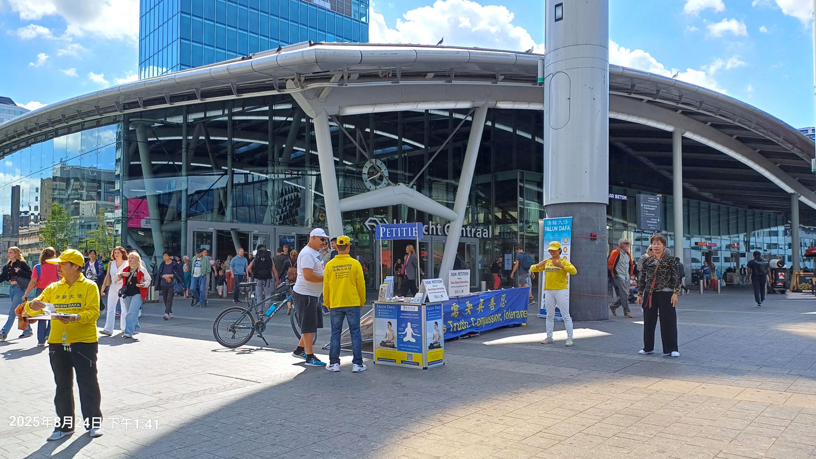 26 października 2025 roku praktykujący Falun Dafa zorganizowali wydarzenie w pobliżu Dworca Centralnego w Utrechcie, aby przedstawić Falun Dafa i zwiększyć świadomość na temat przymusowego pobierania organów w Chinach