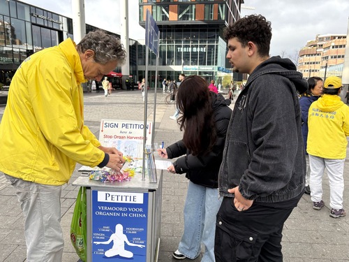 Irem Karasu pochodzi z Turcji i mieszka w Rotterdamie. Zatrzymała się, aby przeczytać duży baner praktykujących, który zawierał szczegółowe informacje o prześladowaniach Falun Dafa w Chinach. Po zapoznaniu się z tematem podpisała petycję i obiecała podzielić się nią z rodziną. „Przynajmniej zachęca to osoby z sumieniem do zapoznania się z petycją i zwrócenia na nią uwagi” – powiedziała.