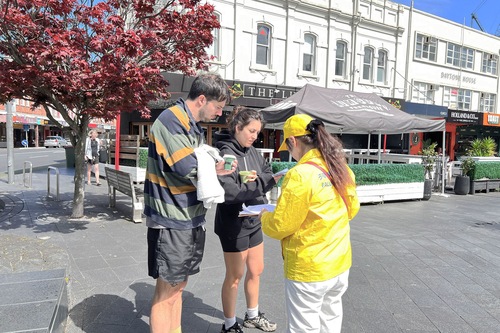 (Minghui.org) Praktykujący zorganizowali wydarzenie w Lumsden Green w Newmarket, centrum handlowym Auckland, 1 listopada 2025 roku. Opowiedzieli ludziom, jak Komunistyczna Partia Chin (KPCh) prześladuje Falun Dafa od 26 lat i zaapelowali do wszystkich grup społecznych o zwrócenie uwagi na te rażące naruszenia praw człowieka.