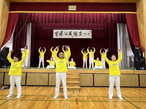Praktykujący Falun Gong w Hiroszimie wzięli udział w 52. Festiwalu Centrum Społeczności Kōbe w Hiroszimie, który odbył się 2 listopada 2025 roku. Przedstawili Falun Gong na scenie i zaprezentowali pięć zestawów ćwiczeń. Prawie wszyscy widzowie ćwiczyli razem z nimi, tworząc spokojną atmosferę. Po wydarzeniu wiele osób pytało o lokalne miejsca praktyki, a niektórzy zaoferowali pomoc praktykującym.