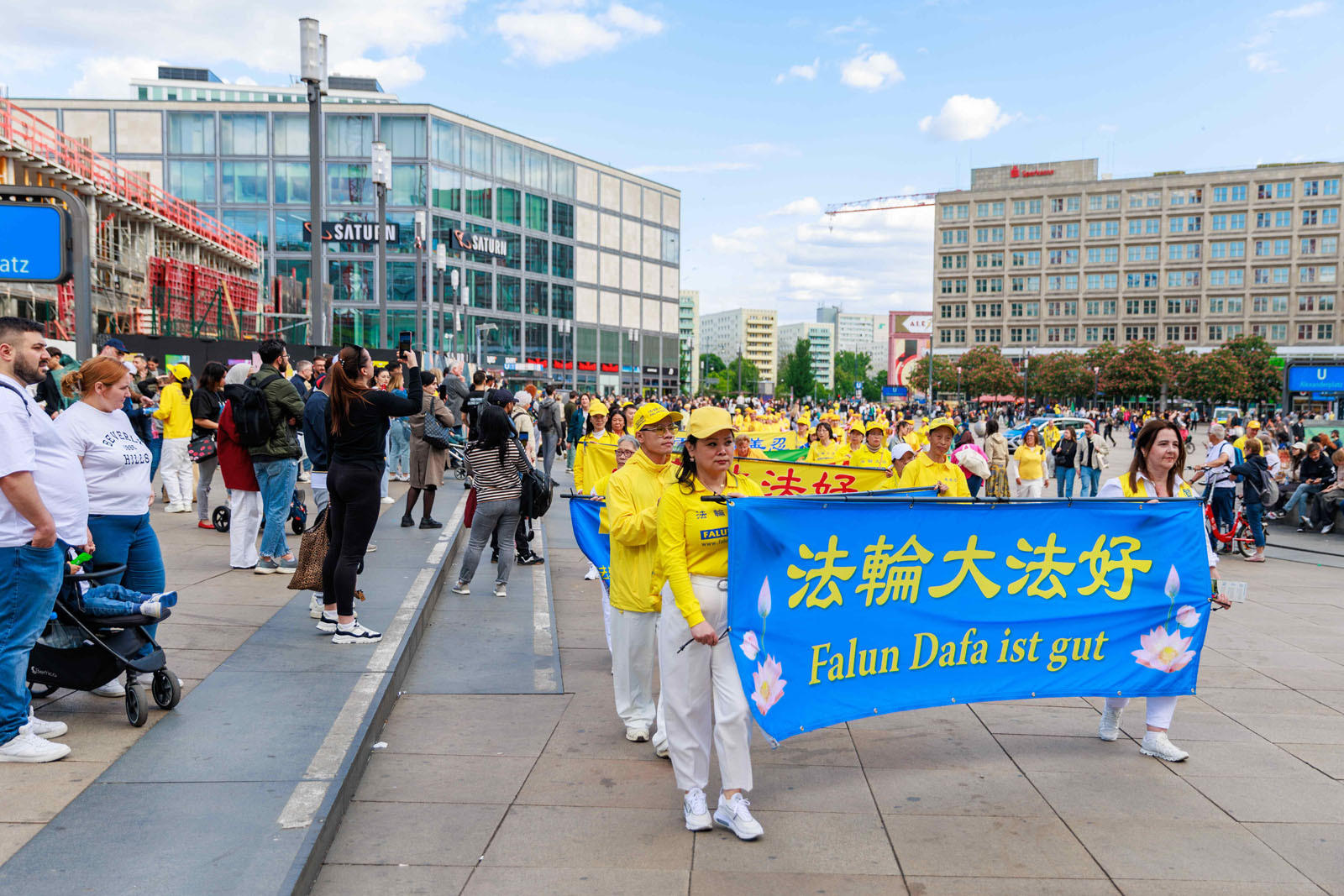 Praktykujący świętują Światowy Dzień Falun Dafa 2025 w Berlinie w Niemczech