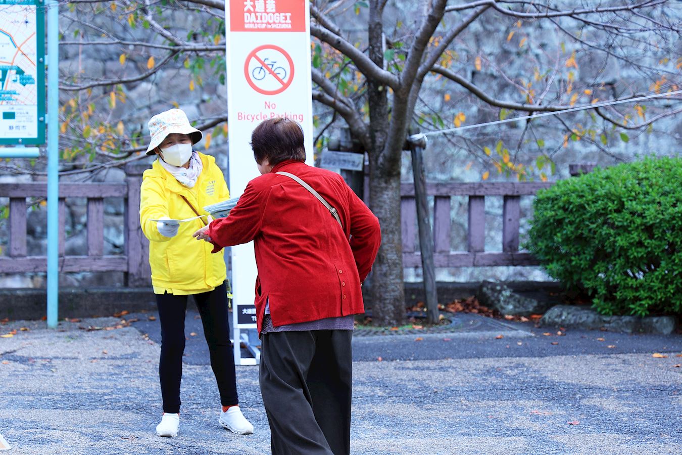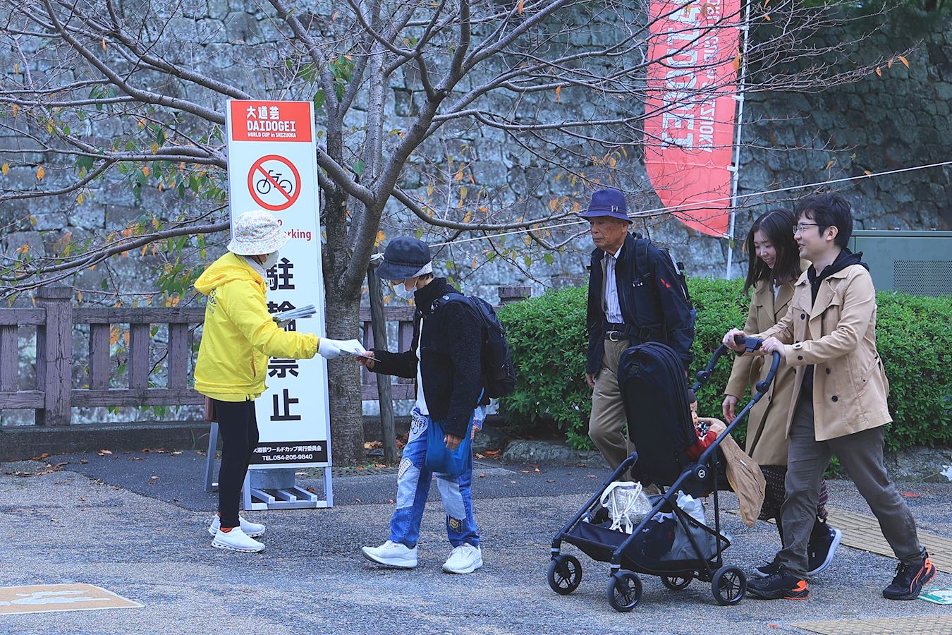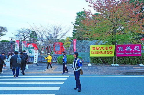 Rozpowszechnianie informacji o Falun Dafa w pobliżu parku zamkowego Sumpu, głównego miejsca Mistrzostw Świata w Daidogei