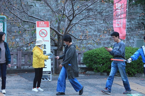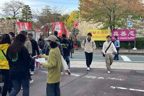 (Minghui.org) Największy festiwal sztuk ulicznych w Azji, 32. Mistrzostwa Świata w Daidogei, odbyły się w Shizuoka w dniach od 31 października do 3 listopada 2025 roku. Artyści uliczni z całego świata przybywają do Japonii, aby wziąć udział w tym popularnym wydarzeniu. Praktykujący Falun Dafa przekazywali mieszkańcom i turystom informacje o swojej praktyce duchowej i prześladowaniach w Chinach.