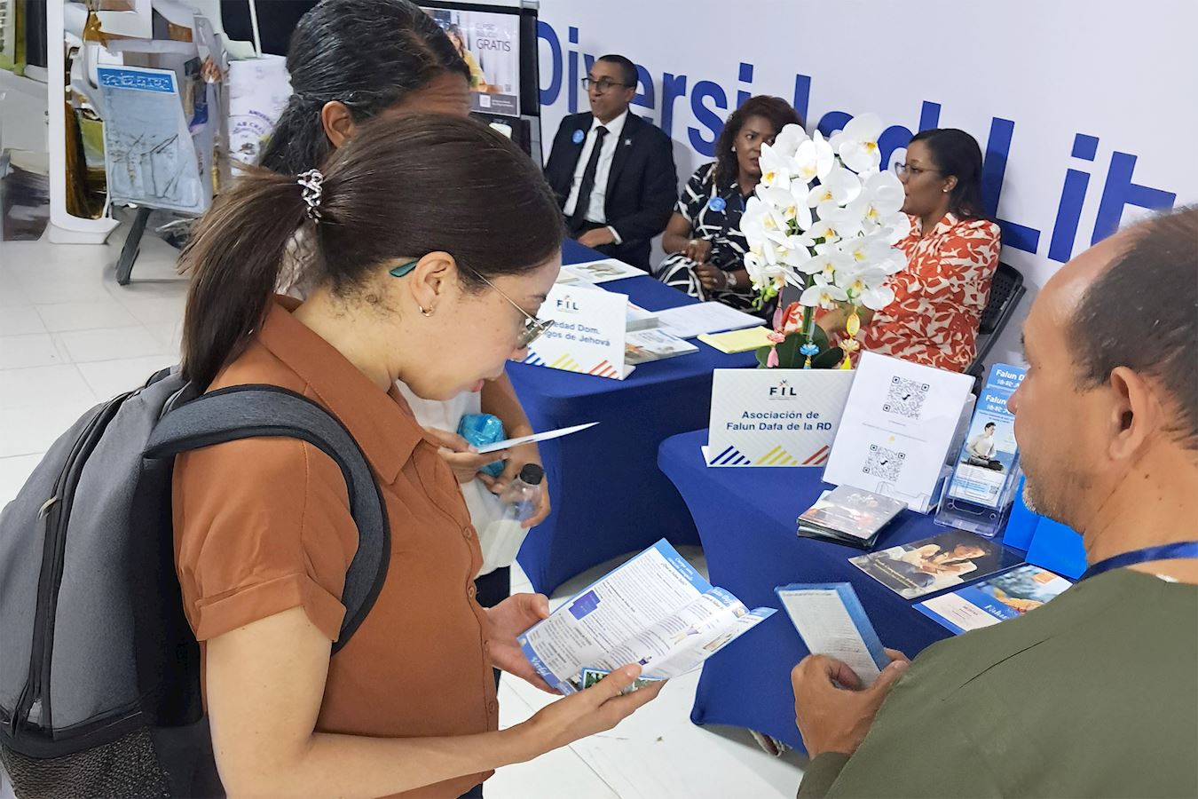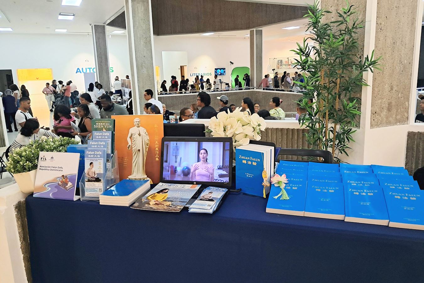 Stoisko Falun Dafa z Zhuan Falun na Targach Książki Santo Domingo 2025