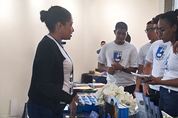Praktykująca rozmawia z młodymi ludźmi o korzyściach płynących z praktyki