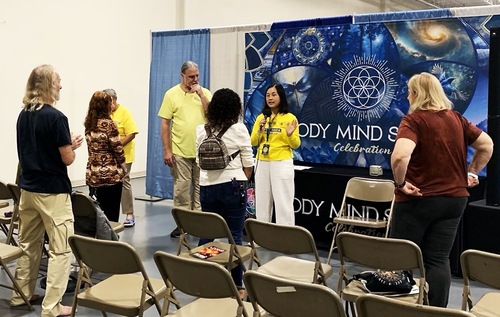 (Minghui.org) Praktykujący Falun Dafa z Centralnej Florydy uczestniczyli w dwudniowych "Mind Body Spirit Expo" na targach w Tampie na Florydzie w dniach 15 i 16 listopada 2025 roku.