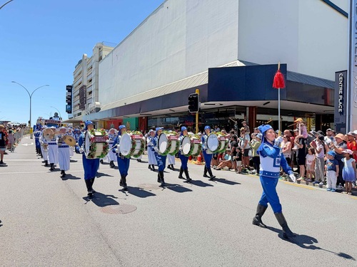Zespół bębniarzy podczas parad w Te Awamutu i Cambridge w dniach 6 i 7 grudnia 2025 r.