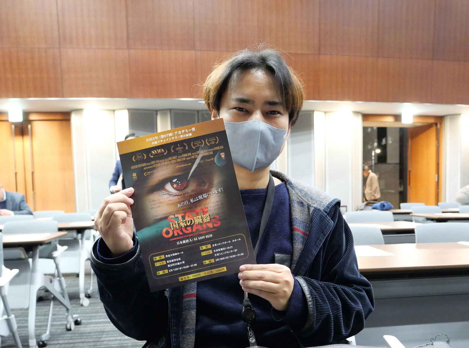 (Minghui.org) Film dokumentalny „Organy państwowe”, który ujawnia okrucieństwo Komunistycznej Partii Chin (KPCh) polegające na pobieraniu organów od praktykujących Falun Dafa za życia, został wyświetlony w budynku Biura Członków Izby Radców w Tokio w Japonii w Dniu Praw Człowieka, 10 grudnia 2025 roku. Pan Haruo Kitamura, członek Izby Radców, zwrócił się do publiczności i potępił systematyczne pobieranie organów w Chinach.