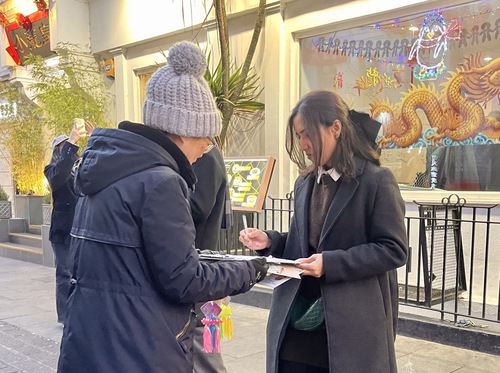 Ludzie podpisują petycję po zapoznaniu się z informacjami o prześladowaniach Falun Dafa przez KPCh