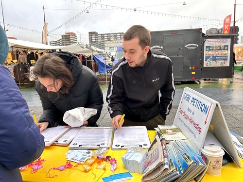 (Minghui.org) Holenderska grupa zajmująca się wyjaśnianiem prawdy zorganizowała 6 grudnia 2025 r. dzień informacyjny w Amsterdamie. Wiele osób dowiedziało się o Falun Gong i podpisało petycję. Jeden z mężczyzn powiedział: „Holandia musi o tym wiedzieć. Popieram was!”.