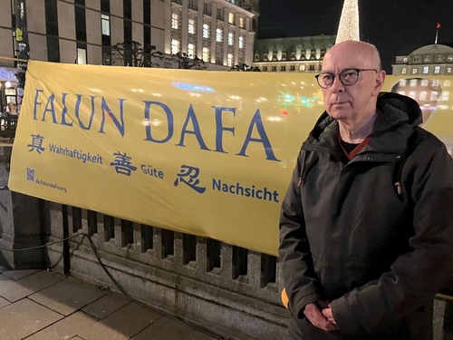 Hamburg jest udekorowany w oczekiwaniu na zbliżające się święta Bożego Narodzenia. Muzycy wykonujący kolędy dodali świątecznej atmosfery. Coroczny jarmark bożonarodzeniowy w Hamburgu przyciągnął więcej osób niż zwykle. Praktykujący przedstawili Falun Dafa, wykonując ćwiczenia – rozdawali również ulotki i rozmawiali z przechodniami. Wiele osób przyciągnęła kojąca muzyka towarzysząca ćwiczeniom i zatrzymało się, aby dowiedzieć się więcej o wydarzeniu.