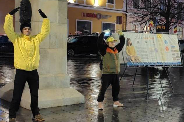 Zaprezentowali ćwiczenia Falun Dafa w miejscu ćwiczeń w Parku Centralnym Simion Bărnuțiu i ustawili stoisko informacyjne na bulwarze Eroilor. Rozdawali kalendarze, broszury informacyjne i kwiaty lotosu oraz rozmawiali z ludźmi o Falun Dafa. Zbierali również podpisy pod petycją wzywającą do zakończenia prześladowań ze strony Komunistycznej Partii Chin (KPCh).