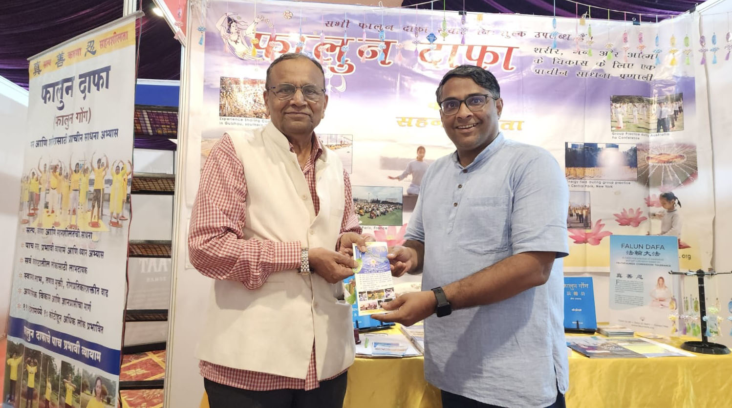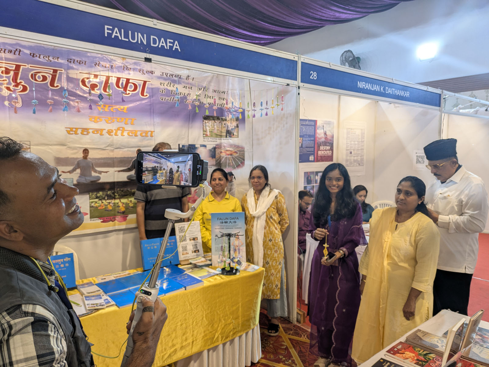 Podczas inauguracji targów książek praktykujący mieli okazję przedstawić Falun Dafa gościowi honorowemu targów, Vishwasowi Patilowi. Pan Patil jest znanym autorem marathi i byłym urzędnikiem indyjskiej służby administracyjnej (IAS). Praktykujący pokrótce wyjaśnili mu, czym jest Falun Dafa, i przekazali mu drukowane materiały informacyjne.