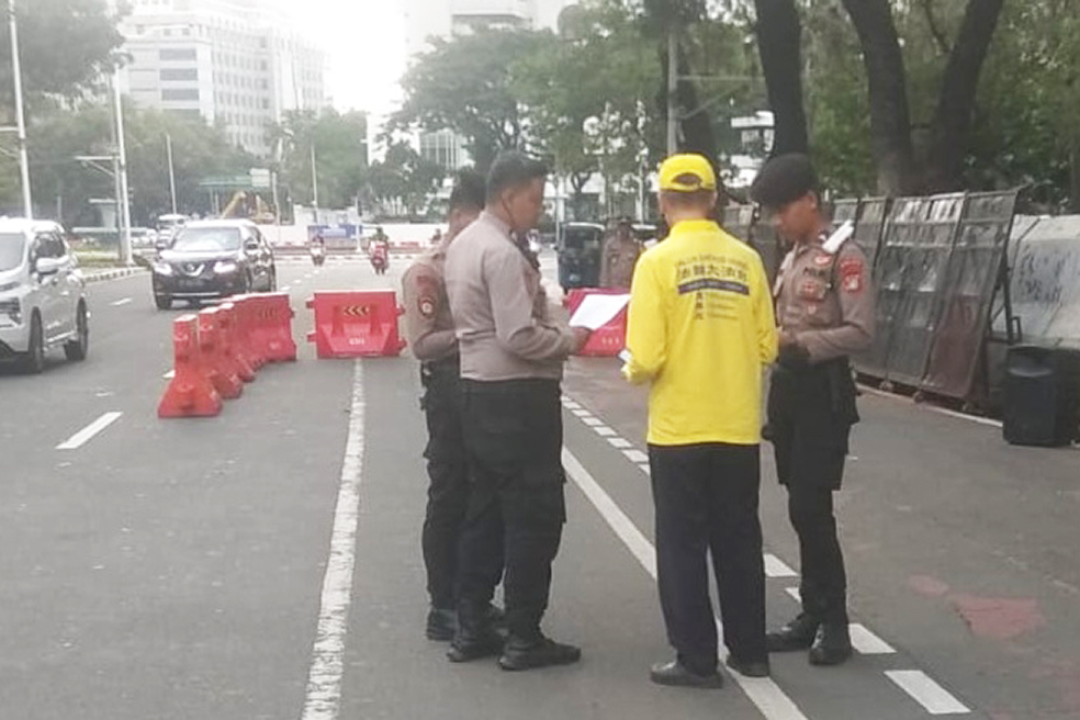 Dwi Harbowo, komisarz policji i zastępca komendanta komendy policji okręgu Gambir, przyszedł do stoiska praktykujących i powiedział, że policjanci na służbie zapewnią bezpieczeństwo podczas działań praktykujących.