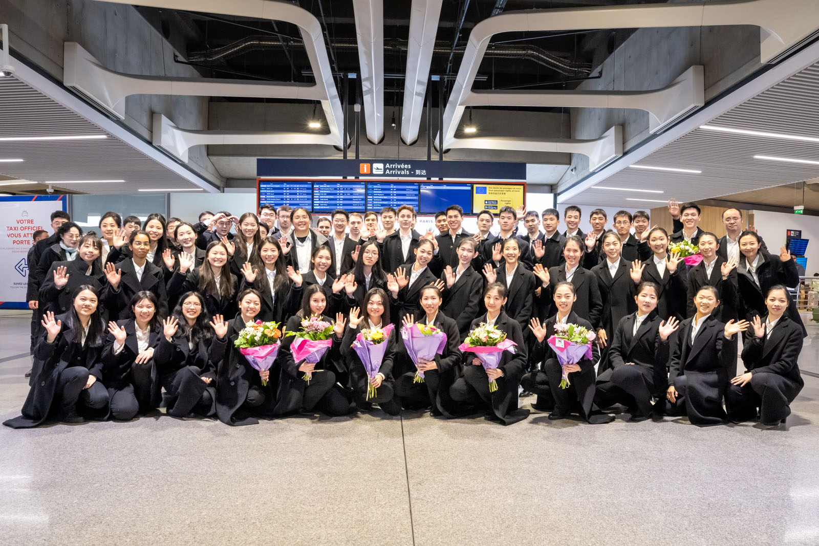Międzynarodowa grupa Shen Yun przybyła na lotnisko Paris-Charles de Gaulle 16 grudnia. Artyści zostali powitani kwiatami, oklaskami i okrzykami fanów: „Witajcie, Shen Yun!”.