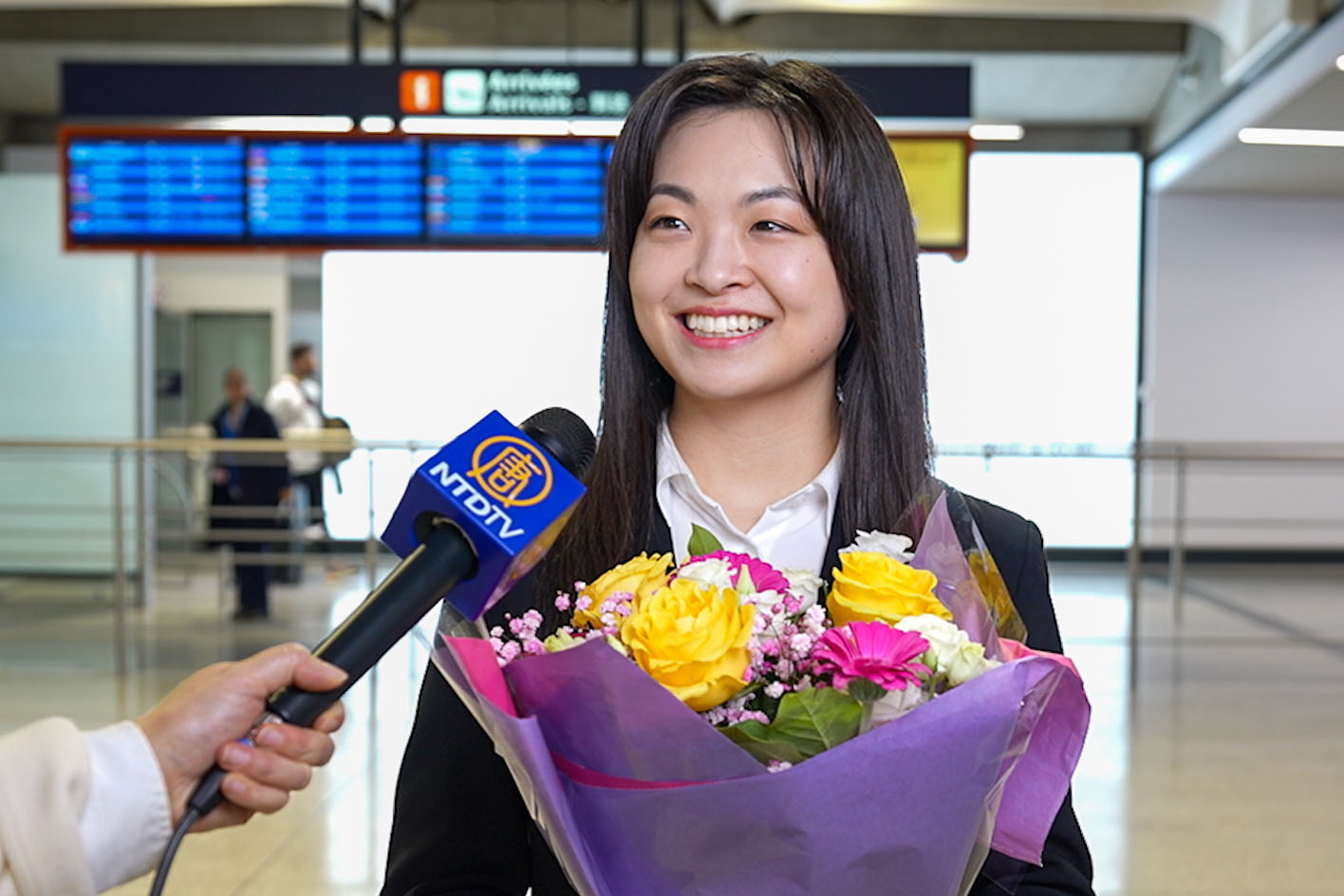 16 grudnia międzynarodowa grupa Shen Yun została powitana kwiatami i oklaskami przez lokalnych fanów na lotnisku Paris-Charles de Gaulle. (Zrzut ekranu dzięki uprzejmości The Epoch Times)
