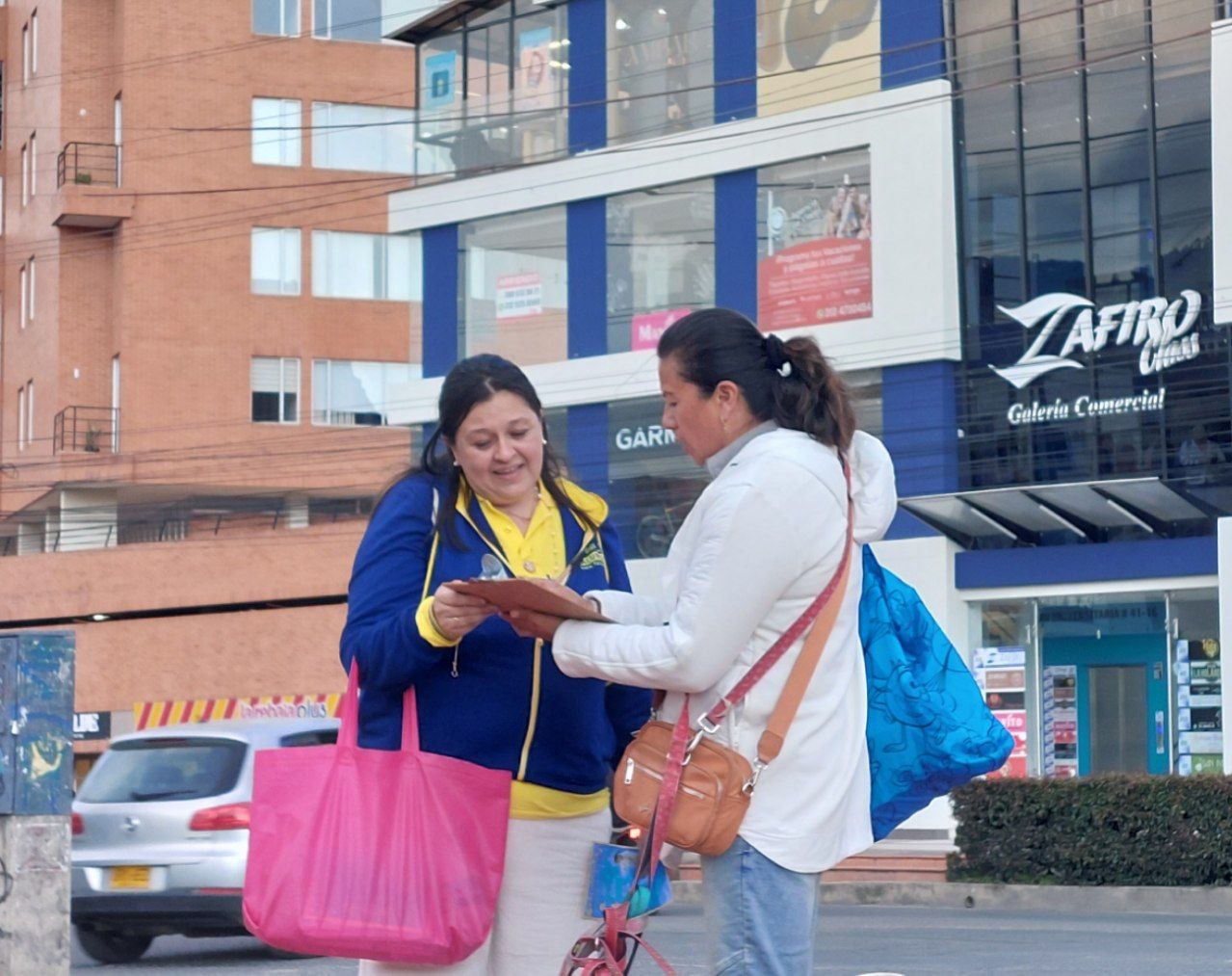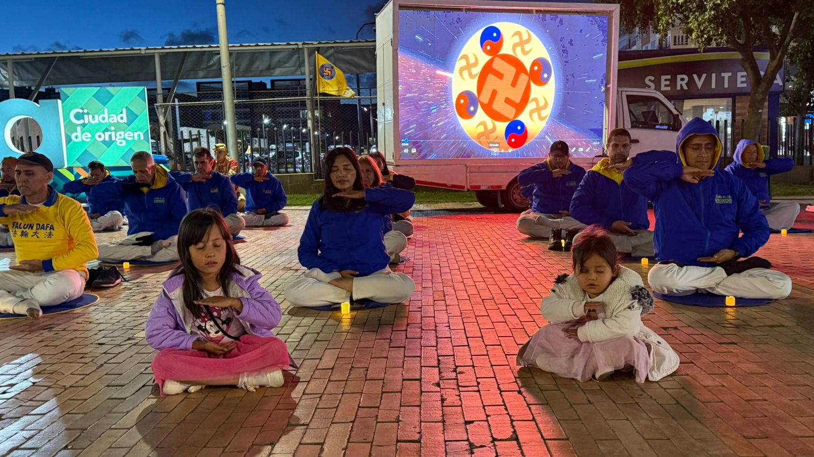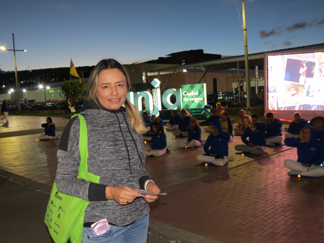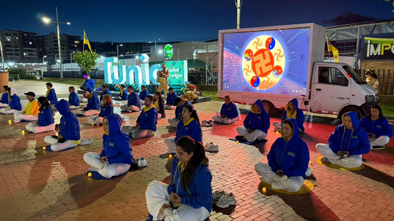 W centrum handlowym Unicentro zorganizowali pokaz ćwiczeń Falun Dafa na świeżym powietrzu. Chociaż klimat miasta jest zimny ze względu na duże wysokości – 2800 metrów nad poziomem morza – miasto znane jest również z ciepłych, przyjaznych mieszkańców i cieszy się reputacją akademickiego centrum Kolumbii, gdzie znajduje się wiele uniwersytetów.