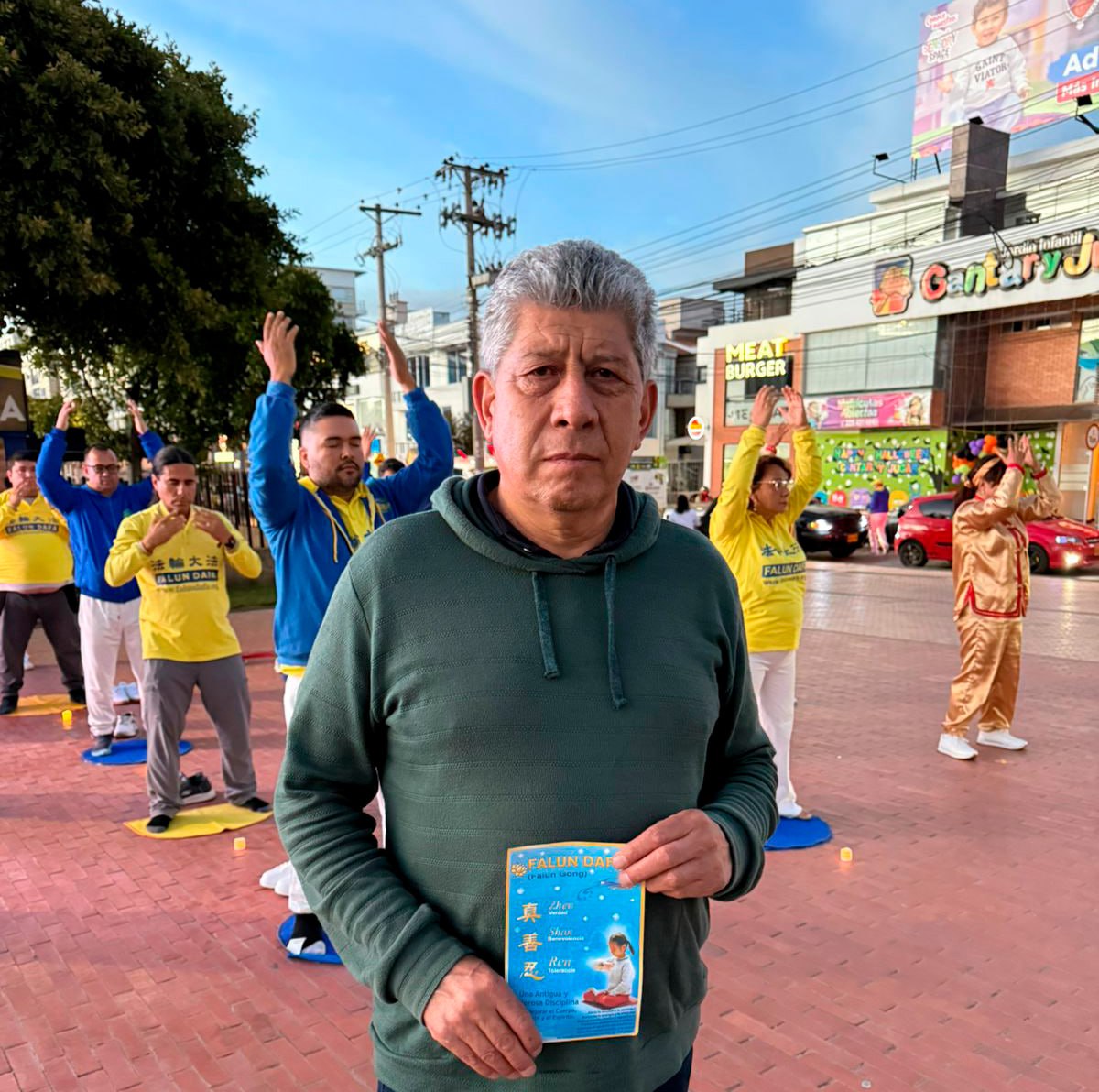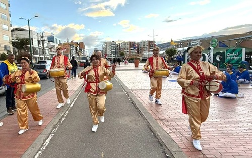 W tej atmosferze otwartej rozmowy i myśli praktykujący włączyli się do dyskusji. Rozdawali ulotki, aby poinformować przechodniów o korzyściach płynących z praktyki i pomóc ludziom dowiedzieć się o prześladowaniach Falun Dafa w Chinach przez Komunistyczną Partię Chin (KPCh). Praktykujący wystąpili również z bębnami biodrowymi, co wywarło wrażenie na mieszkańcach Tunja, którzy przechodzili obok po południu.