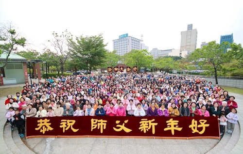 Praktykujący z Taoyuan, Hsinchu i hrabstwa Miaoli zebrali się w parku kulturowym Zhubei, aby złożyć mistrzowi Li życzenia noworoczne