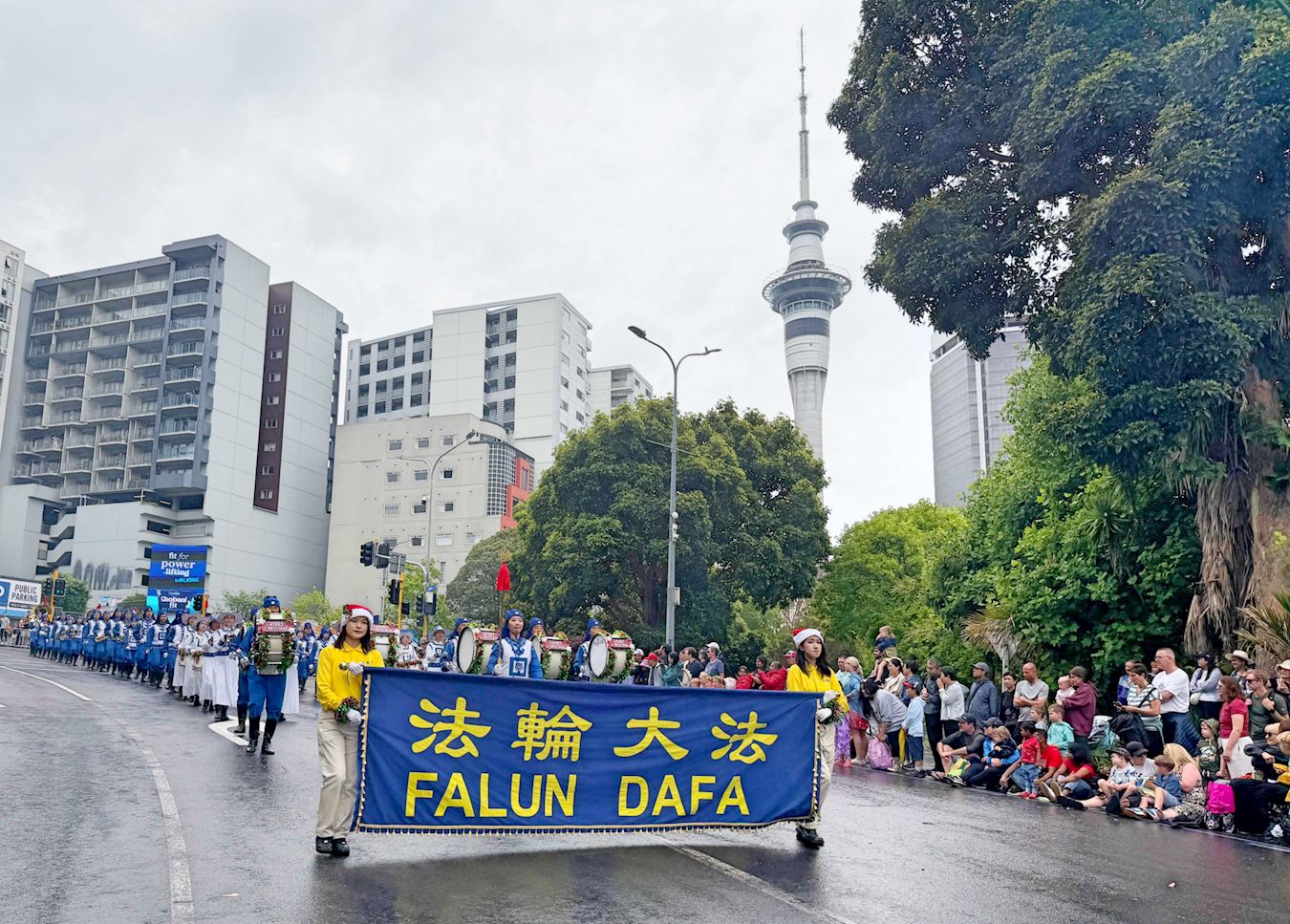 Praktykujący Falun Dafa podczas parady rolników w Auckland 30 listopada