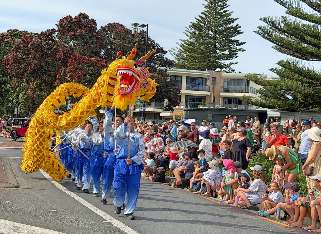 Kamryn, który pracował jako ochroniarz podczas świątecznej parada rolników z Auckland, powiedział: „Moja prababcia jest Chinką, więc cieszę się, że widzę Chińczyków w tej paradzie. Stroje zespołu są wspaniałe”.