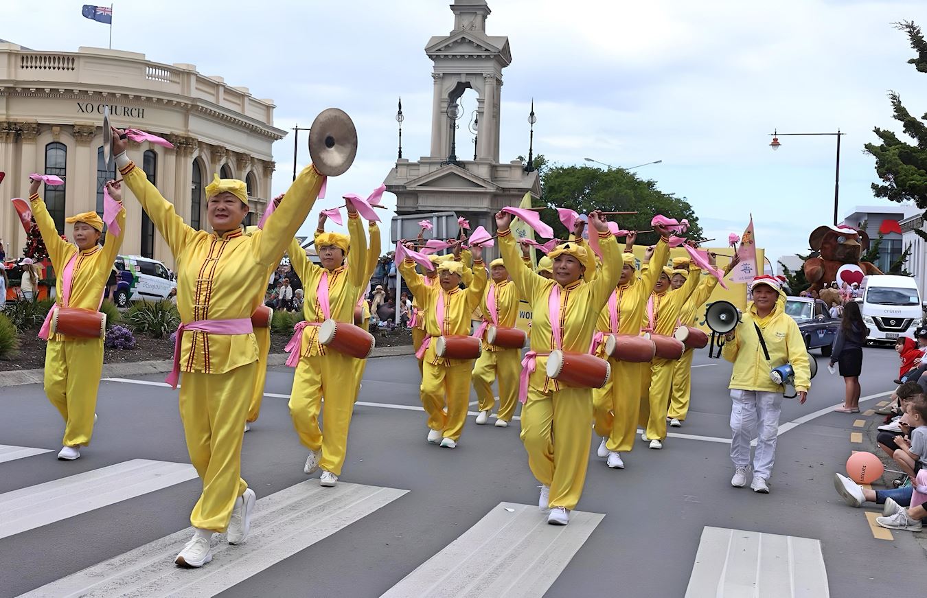 (Minghui.org) Praktykujący Falun Dafa w Nowej Zelandii wzięli udział w pięciu paradach bożonarodzeniowych w czterech miastach na Wyspie Północnej i Wyspie Południowej w dniach 29 i 30 listopada 2025 r. Parady odbyły się w Auckland, Orewa w Auckland, Rotorua, Dunedin i Invercargill.