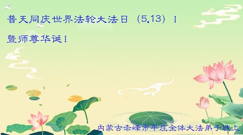 Praktykujący Falun Dafa z Autonomicznego Regionu Mongolii Wewnętrznej składają życzenia Czcigodnemu Mistrzowi z okazji urodzin i świętują Światowy Dzień Falun Dafa!