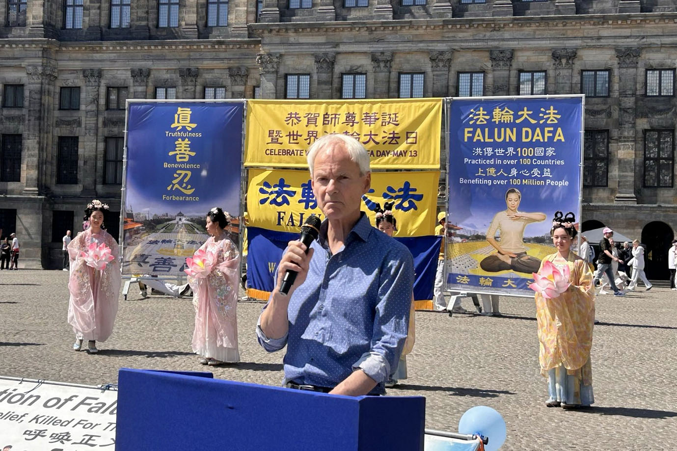 Harry van Bommel, były członek Izby Reprezentantów Partii Socjalistycznej w Holandii, wziął udział w wiecu i przemawiał w odpowiedzi na listy gratulacyjne od Lekarzy Przeciwko Przymusowemu Pozyskiwaniu Organów (DAFOH) i Globalnych Obrońców Praw Człowieka (GHRD).
