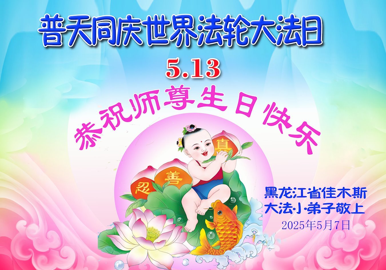 Inny praktykujący z Jiamusi powiedział: „Jestem ośmioletnim uczniem Dafa. Mistrzu, ciężko pracowałeś! Będę dobrze studiował Fa, kultywował swoje serce i będę dobrym małym uczniem Dafa!”.