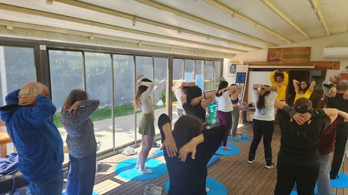 Uczestnicy uczą się ćwiczeń Falun Dafa
