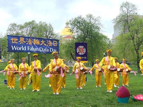 (Minghui.org) W związku ze zbliżającą się 33. rocznicą publicznego wprowadzenia Falun Dafa i urodzinami Mistrza Li, praktykujący z Nowej Anglii zorganizowali zajęcia w Boston Common, najstarszym parku publicznym w USA, 4 maja 2025 r., aby uczcić 26. Światowy Dzień Falun Dafa i wyrazić swoją wdzięczność swojemu założycielowi, Mistrzowi Li Hongzhi.