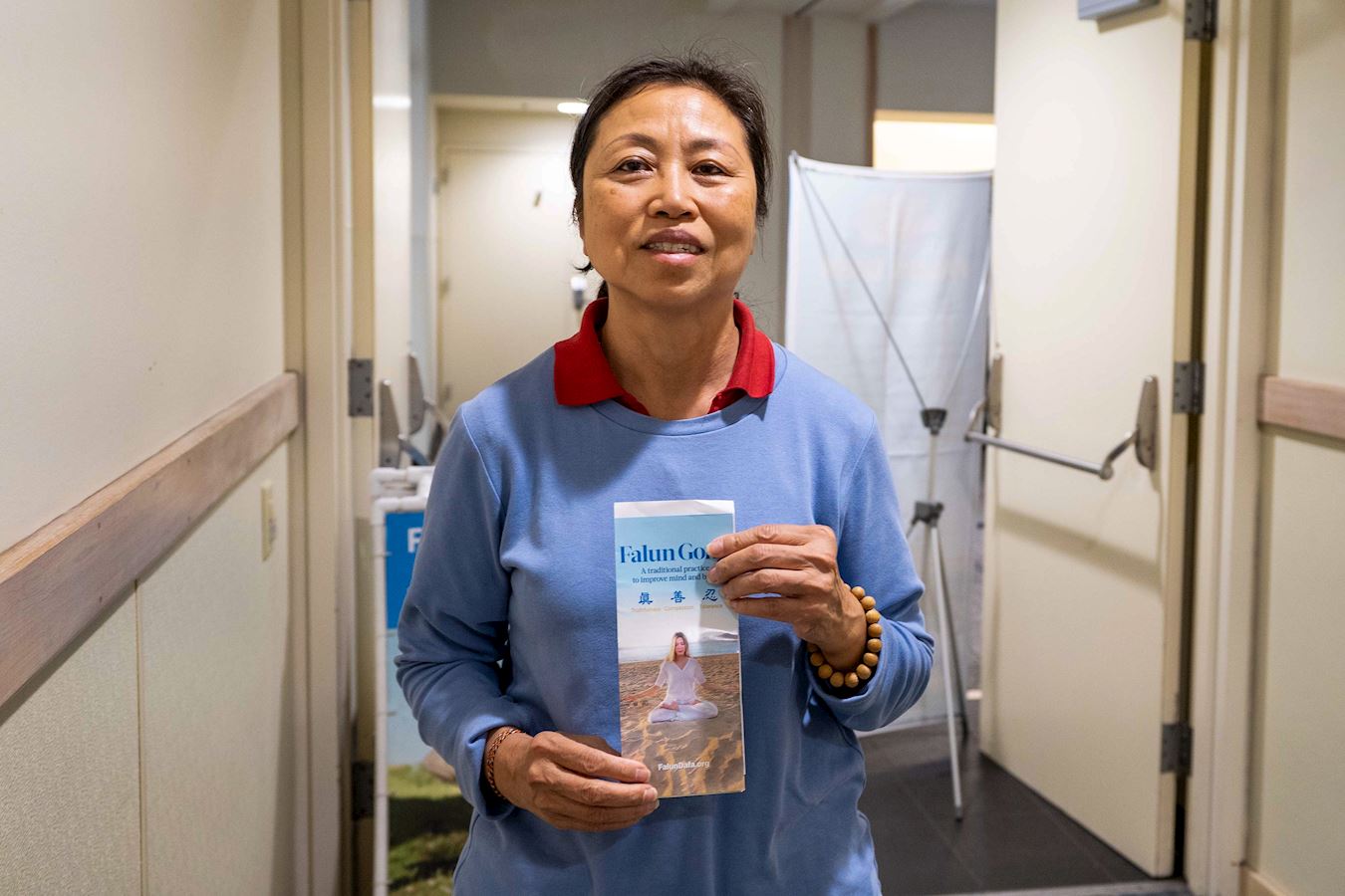 Pani Zhou, która sama uczyła się Falun Dafa w Chinach, powiedziała, że chociaż wykonywała ćwiczenia, miała trudności z powodu braku instrukcji, przez co jej ruchy były nieprawidłowe. Wcześniej przeszła operację i była po niej bardzo osłabiona, więc odpoczywała w domu. „W tamtym czasie moje zdrowie było bardzo słabe. Ktoś zasugerował mi, żebym spróbowała Falun Dafa. Praktykowałam w domu i powoli czułam zmiany w moim ciele”.